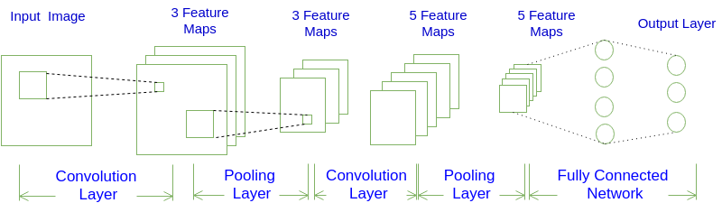 INPUT -> CONV -> POOL -> CONV -> POOL -> FC -> FC