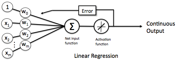 由于感知器(Perceptron)的激活函数为阶跃函数,这意味着大多数时候感知器只能承担二分类之类的操作。如果数据集本身并不能(或者较难)被二分,或者说数据集不是线性可分的时候,感知器的训练就难以得到可用的权重和 bias,这时候可以考虑使用线性函数对数据进行分析。所谓使用线性函数进行分析,其实换一个说法就是线性回归啦(w)流程大概长下面这样: